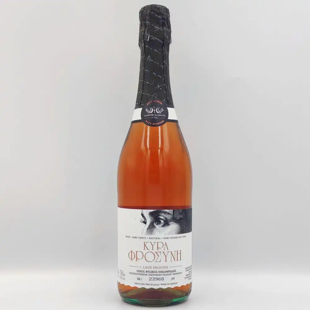 Το Κτήμα Γκλίναβος Κυρά Φροσύνη Ροζέ (0.75Lt) είναι ένα αφρώδες κρασί που συνδυάζει την παράδοση της Ηπείρου με τη σύγχρονη τεχνογνωσία, αναδεικνύοντας μοναδικά τις τοπικές ποικιλίες Ντεμπίνα και Μπεκάρι. Προερχόμενο από τα Ιωάννινα, μία περιοχή με πλούσια ιστορία και ιδανικές κλιματολογικές συνθήκες για την παραγωγή εκλεκτών κρασιών, το συγκεκριμένο αφρώδες έχει αποκτήσει τη φήμη του ως ένα κρασί που ξεχωρίζει για τον χαρακτήρα και την αυθεντικότητά του. Το όνομα «Κυρά Φροσύνη» αποτίει φόρο τιμής σε μια εμβληματική μορφή της τοπικής παράδοσης, προσδίδοντας στο κρασί έναν ιδιαίτερο συμβολισμό.