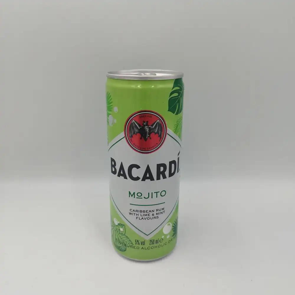Το Bacardi Mojito RTD σε συσκευασία 250ml φέρνει την αυθεντική κουβανέζικη ατμόσφαιρα στα χέρια σας, σε μια εκδοχή έτοιμη προς κατανάλωση που συνδυάζει πρακτικότητα με γεύση. Εμπνευσμένο από το κλασικό και παγκοσμίως αγαπημένο cocktail Mojito, το συγκεκριμένο προϊόν ενσωματώνει τη φρεσκάδα και τη ζωντάνια του, διατηρώντας την υπογραφή ποιότητας της Bacardi.