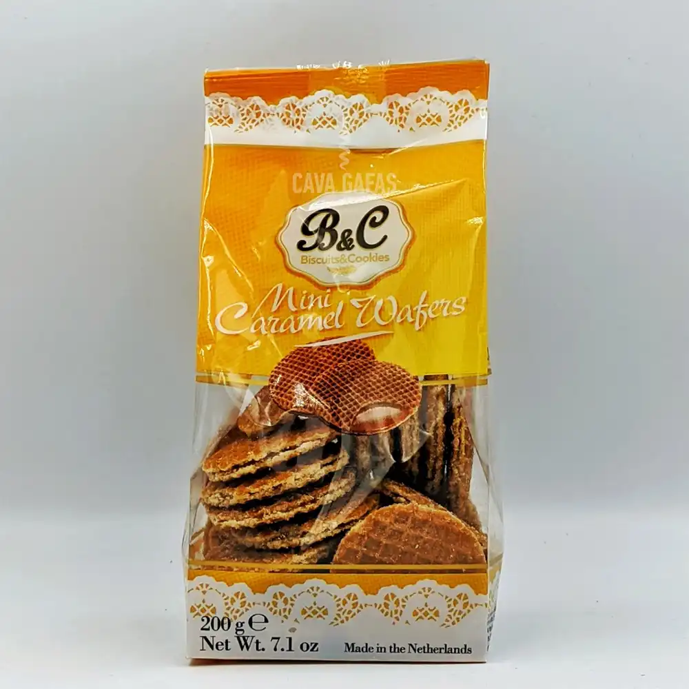 Τα ολλανδικά βαφλάκια καραμέλας της B&C συνδυάζουν τραγανές λεπτές βάφλες με πλούσια γέμιση καραμέλας. Ένα αυθεντικό γλυκό που ταιριάζει με καφέ, τσάι ή παγωτό.