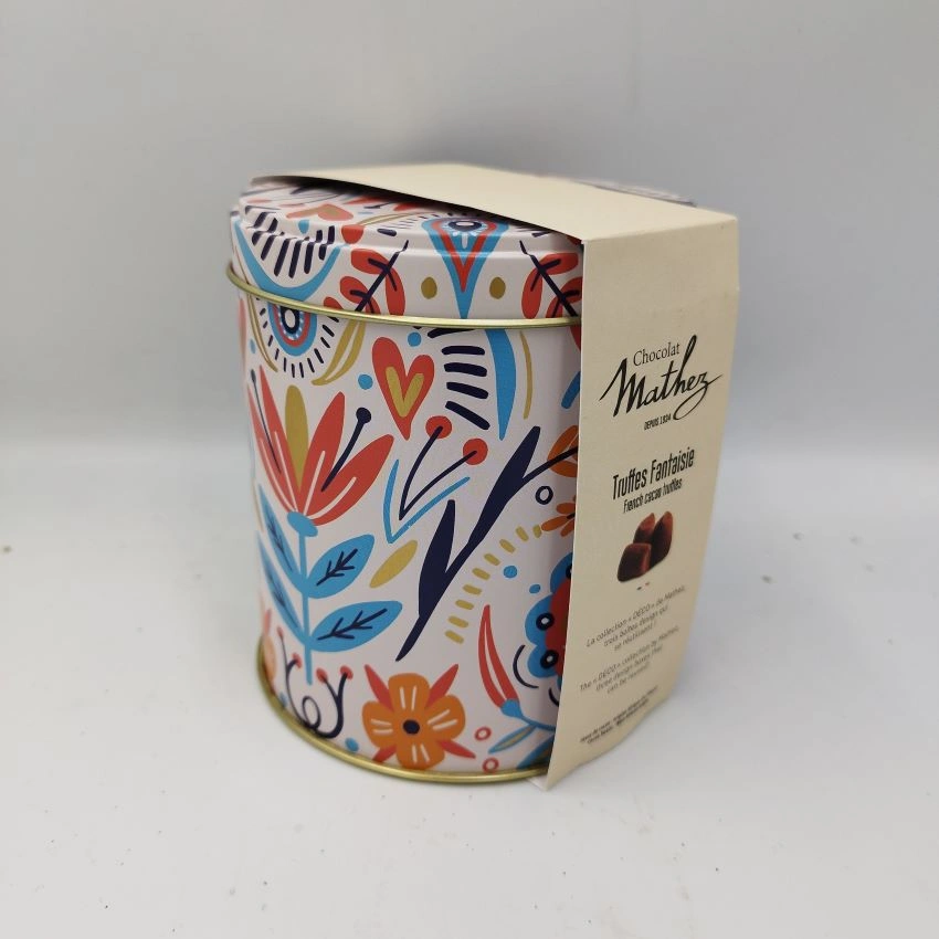 Απολαυστικές γαλλικές τρούφες κακάο, εμπλουτισμένες με φιστίκι, σε εντυπωσιακό πολύχρωμο μεταλλικό κουτί. Η αυθεντική συνταγή της Mathez συνδυάζει βελούδινη υφή και εκλεπτυσμένη γεύση, ιδανική για τους λάτρεις της σοκολάτας. Ένα ξεχωριστό δώρο ή προσωπική απόλαυση με γαλλική φινέτσα.